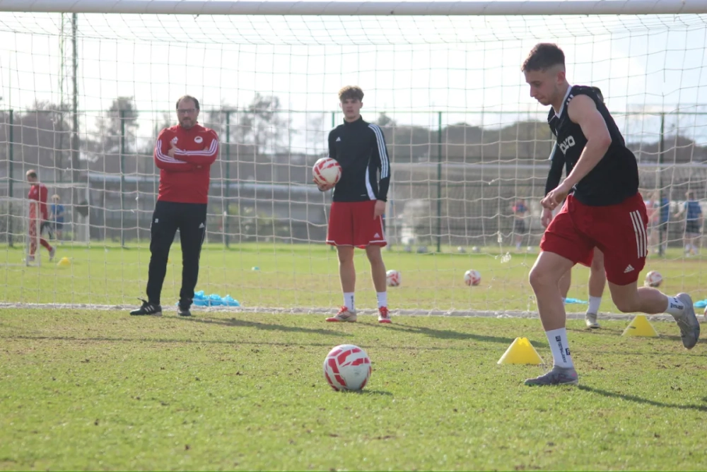 Nach einer kurzen Aktivierung ging es direkt in verschiedene Staffel- und Wettkampfformen, bei denen erneut Zimmerpunkte gesammelt wurden. Anschließend verlagerte sich der Fokus klar auf das Spiel mit Ball: dynamische Spielformen auf Minitore und große Tore, viele Aktionen im letzten Drittel und zahlreiche Torabschlüsse. Zum Abschluss folgte ein intensives 11-gegen-11, in dem die Trainingsinhalte unter Wettkampfbedingungen umgesetzt wurden.