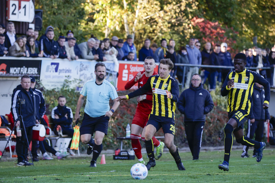 Nach einer knappen halben Stunde hätte der Partie bereits vorentscheidende Richtung gegeben werden können. Briesker Foul an der Strafraumgrenze mit Feldverweis und VfB-Freistoß als Folge, den Kniesche jedoch an die Unterkante der Latte setzte (29.). In der Folge zogen sich die Platzherren etwas zurück und reagierten vornehmlich nur noch. Dennoch spielten sie den ersten Durchgang geordnet, emotionsfrei und erwachsen herunter.